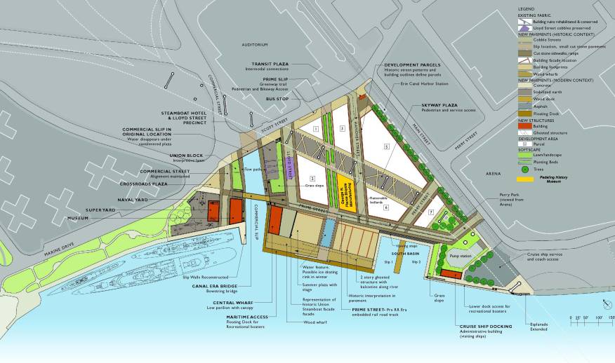 The Master Plan for the Erie Canal Harbor Project provides a vision that the “Erie Canal Harbor will be a dynamic year-round site that celebrates Buffalo's local history and role in our nation's growth and development.” The re-creation of this site has been identified to take on a historic preservation approach providing an interpretive landscape that conveys the significance of the canal district and a realistic impression of its physical character.